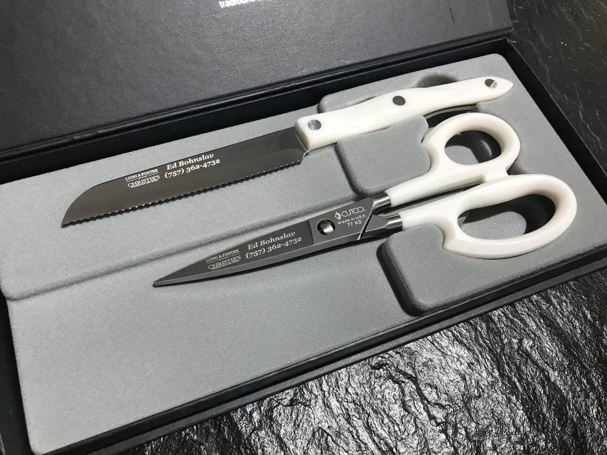 Ninety percent (90%) of our engraving is performed by our dedicated Cutco Gifting Team at our factory in Olean, NY. Occasionally, we may utilize an exclusive preferred partner for specialized projects. Rest assured that whether we use our in-house team or our preferred partner, the professionals handling your Cutco engraving have years of experience and are dedicated to the highest-quality outcomes possible.